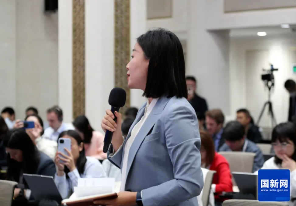 中央广播电视总台央视记者提问(赵一帆 摄)